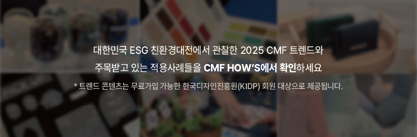 한국디자인진흥원(kidp.or.kr)이 운영하는 CMF 온라인 아카이브, CMF HOW'S입니다.